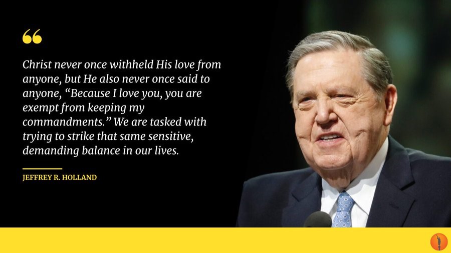 “We have to be careful that love and empathy do not get interpreted as condoning and advocacy, or that orthodoxy and loyalty to principle not be interpreted asunkindness or disloyalty to people.” Elder Jeffrey R. Holland